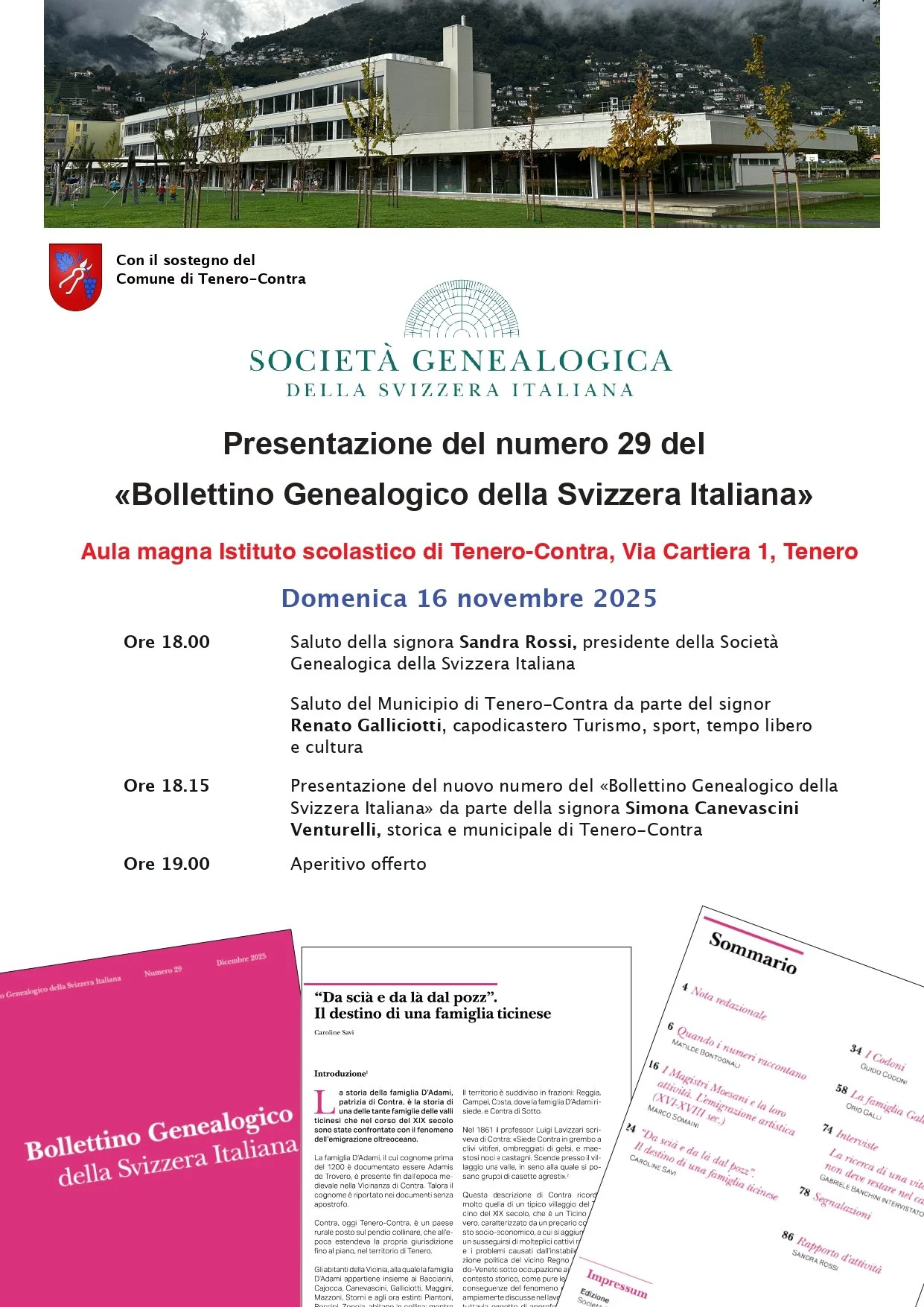16.11.2025 - Società Genealogica della Svizzera Italiana Museo Verzasca24 ottobre 2025 Facebook0 Twitter LinkedIn0 Reddit Tumblr Pinterest0 0 Likes